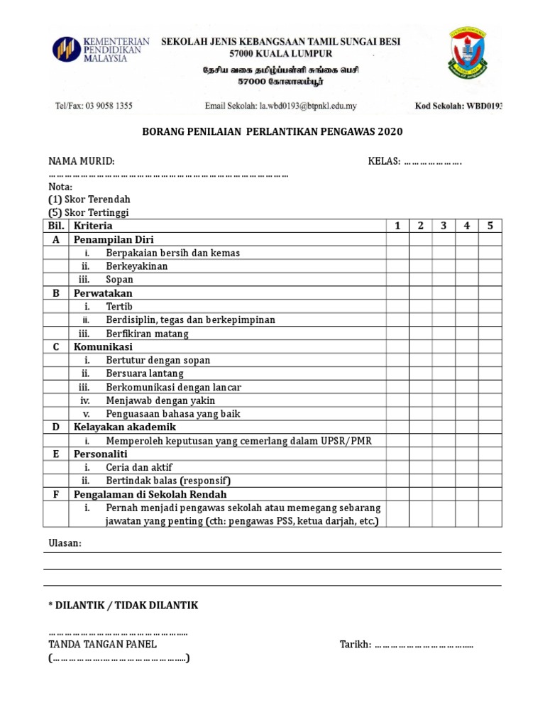 Borang Pemarkahan Dan Calon Pengawas Baru 2016
